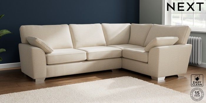 7.2.10 Buy Stamford Large Corner Sofa - Right Hand Fine Chenille Easy Clean Oyster Large Square Angle - Chrome Metal from the Next UK online shop Click here to use our accessible website