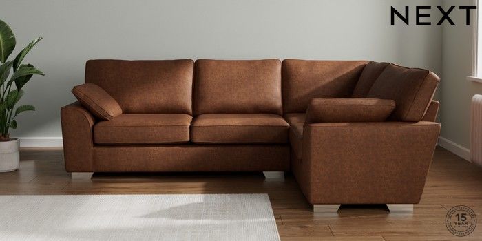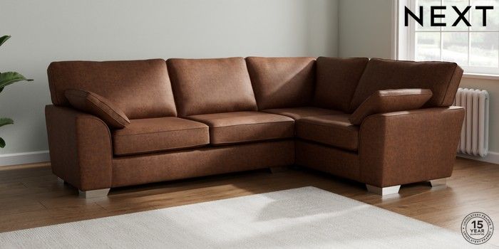 7.3.1 Buy Stamford Large Corner Sofa - Right Hand Monza Faux Leather Easy Clean Chestnut Brown Large Square Angle - Chrome Metal from the Next UK online shop Click here to use our accessible website