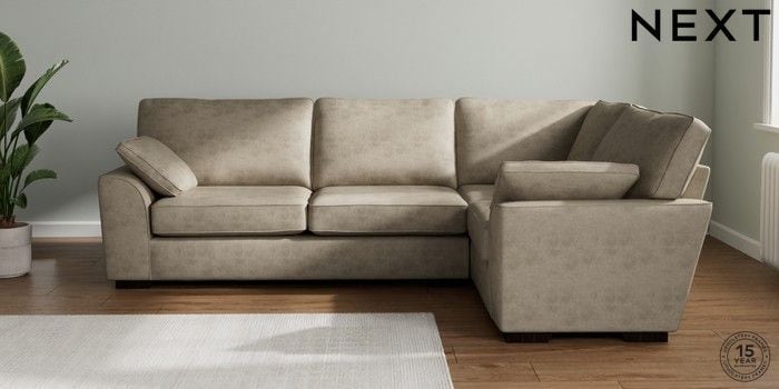 7.3.1 Buy Stamford Large Corner Sofa - Right Hand Monza Faux Leather Easy Clean Mink Brown Large Square Angle - Dark from the Next UK online shop Click here to use our accessible website