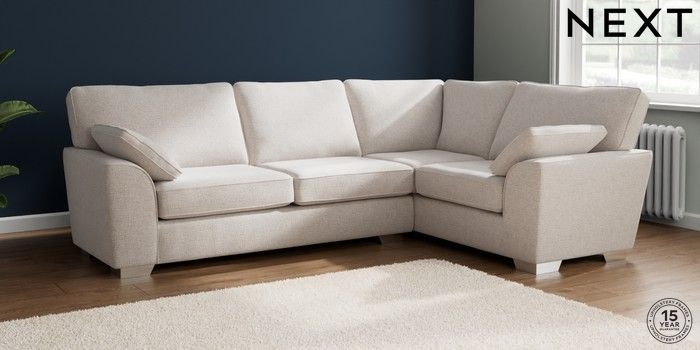 7.2.6 Buy Stamford Large Corner Sofa - Right Hand Multi Weave Oyster Large Square Angle - Chrome Metal from the Next UK online shop Click here to use our accessible website