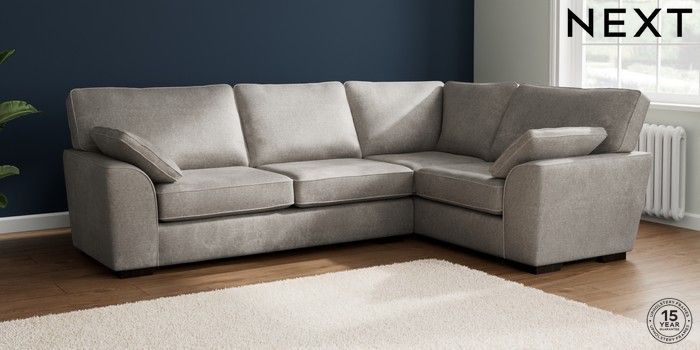 7.2.10 Buy Stamford Large Corner Sofa - Right Hand Plush Chenille Light Grey Large Square Angle - Dark from the Next UK online shop Click here to use our accessible website