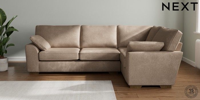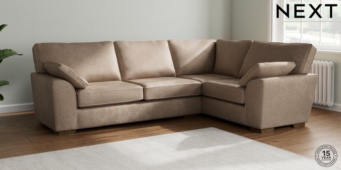 7.2.10 Buy Stamford Large Corner Sofa - Right Hand Plush Chenille Mid Natural Large Square Angle - Mid from the Next UK online shop Click here to use our accessible website
