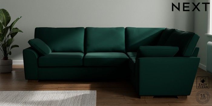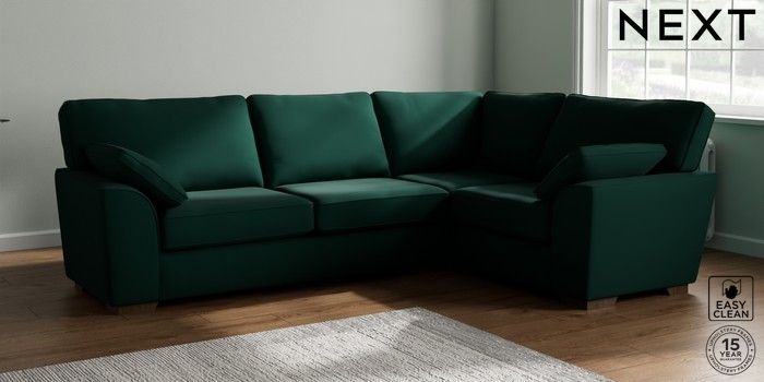 7.2.10 Buy Stamford Large Corner Sofa - Right Hand Plush Velvet Easy Clean Bottle Green Large Square Angle - Mid from the Next UK online shop Click here to use our accessible website