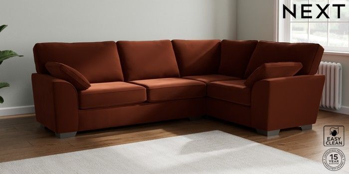7.3.1 Buy Stamford Large Corner Sofa - Right Hand Plush Velvet Easy Clean Ginger Orange Large Square Angle - Gunmetal from the Next UK online shop Click here to use our accessible website