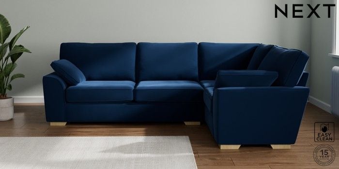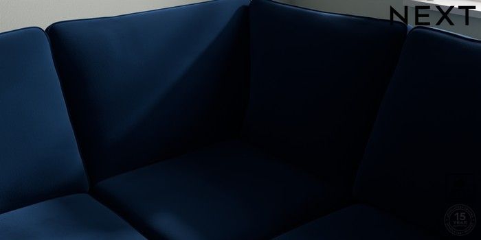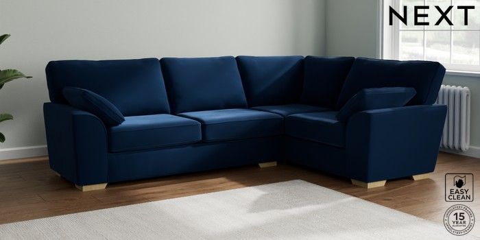 7.2.10 Buy Stamford Large Corner Sofa - Right Hand Plush Velvet Easy Clean Navy Blue Large Square Angle - Light from the Next UK online shop Click here to use our accessible website