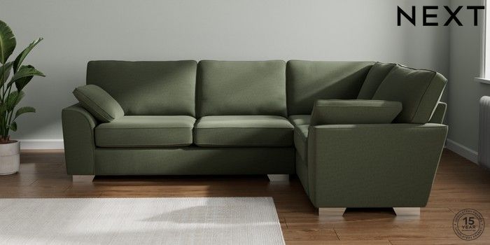 7.3.1 Buy Stamford Large Corner Sofa - Right Hand Relaxed Linen Look Dark Green Large Square Angle - Chrome Metal from the Next UK online shop Click here to use our accessible website