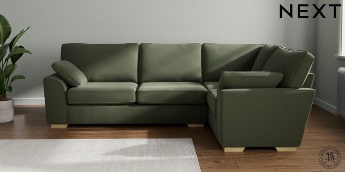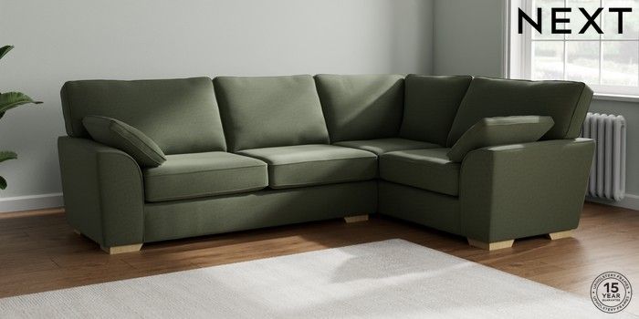 7.2.10 Buy Stamford Large Corner Sofa - Right Hand Relaxed Linen Look Dark Green Large Square Angle - Light from the Next UK online shop Click here to use our accessible website
