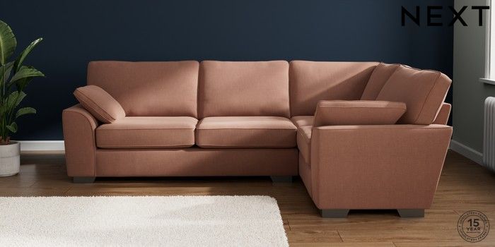 7.2.10 Buy Stamford Large Corner Sofa - Right Hand Relaxed Linen Look Light Rust Brown Large Square Angle - Gunmetal from the Next UK online shop Click here to use our accessible website