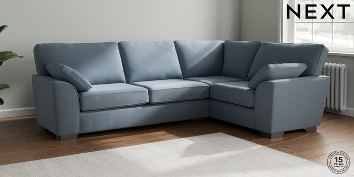 7.3.1 Buy Stamford Large Corner Sofa - Right Hand Relaxed Linen Look Mid Blue Large Square Angle - Gunmetal from the Next UK online shop Click here to use our accessible website