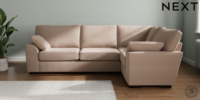 7.2.10 Buy Stamford Large Corner Sofa - Right Hand Relaxed Linen Look Mid Natural Large Square Angle - Dark from the Next UK online shop Click here to use our accessible website