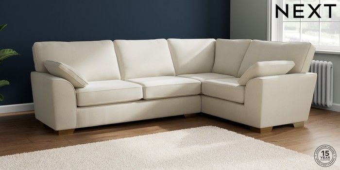 7.2.10 Buy Stamford Large Corner Sofa - Right Hand Relaxed Linen Look Oyster Large Square Angle - Brushed Brass from the Next UK online shop Click here to use our accessible website
