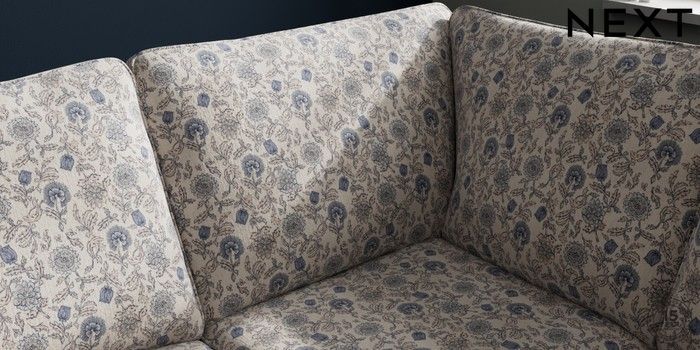7.3.1 Buy Stamford Large Corner Sofa - Right Hand Relaxed Linen Look Print Woodblock Floral Blue Large Square Angle - Gunmetal from the Next UK online shop