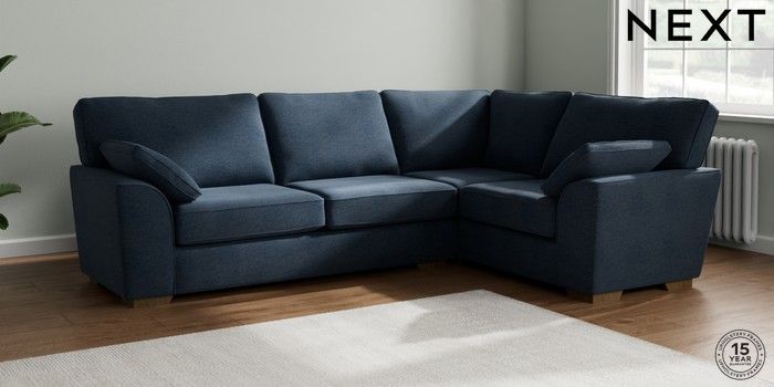 7.2.6 Buy Stamford Large Corner Sofa - Right Hand Ripple Chenille Dark Blue Large Square Angle - Mid from the Next UK online shop Click here to use our accessible website