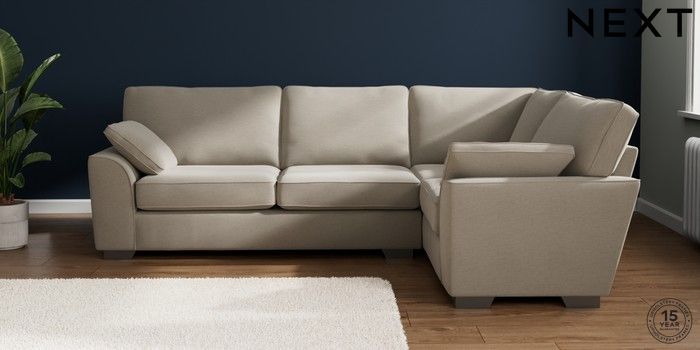 7.2.10 Buy Stamford Large Corner Sofa - Right Hand Ripple Chenille Light Natural Large Square Angle - Gunmetal from the Next UK online shop Click here to use our accessible website