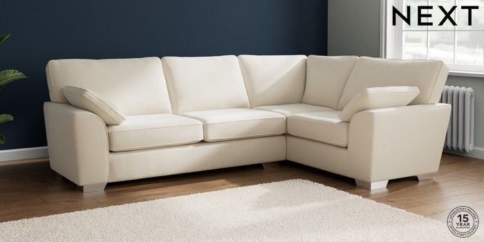 7.2.10 Buy Stamford Large Corner Sofa - Right Hand Ripple Chenille Oyster Large Square Angle - Chrome Metal from the Next UK online shop Click here to use our accessible website