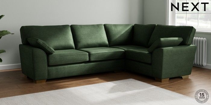 7.2.6 Buy Stamford Large Corner Sofa - Right Hand Luxe Chenille Dark Green Large Square Angle - Brushed Brass from the Next UK online shop Click here to use our accessible website
