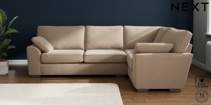 7.3.1 Buy Stamford Large Corner Sofa - Right Hand Tweedy Blend Easy Clean Light Dove Natural Large Square Angle - Gunmetal from the Next UK online shop Click here to use our accessible website