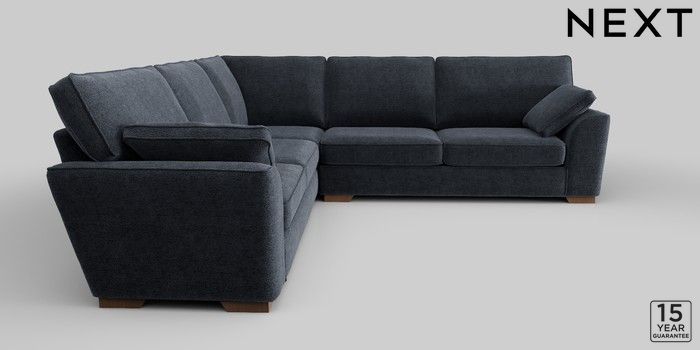 6.12.1 Buy Stamford Large Corner Sofa - Universal Boucle Chenille Dark Slate Blue Large Square Angle - Mid from the Next UK online shop Click here to use our accessible website