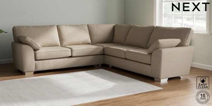 7.3.1 Buy Stamford Large Corner Sofa - Universal Boucle Weave Easy Clean Dark Natural Large Square Angle - Chrome Metal from the Next UK online shop Click here to use our accessible website
