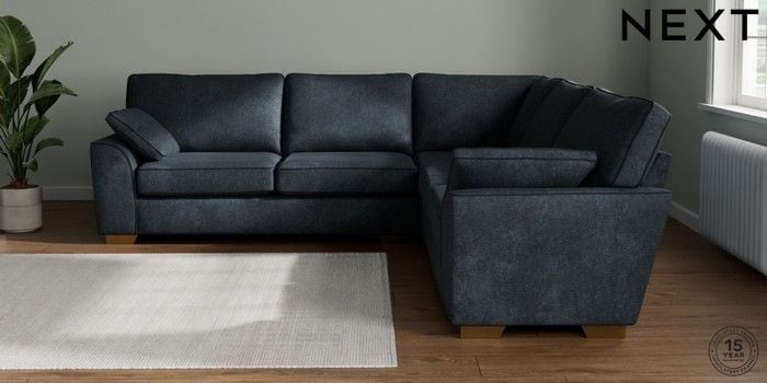 7.2.10 Buy Stamford Large Corner Sofa - Universal Plush Chenille Slate Blue Large Square Angle - Brushed Brass from the Next UK online shop Click here to use our accessible website