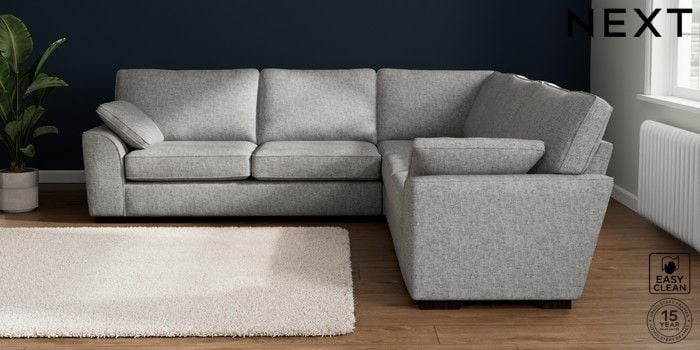 7.2.10 Buy Stamford Large Corner Sofa - Universal Chunky Boucle Easy Clean Light Grey Large Square Angle - Dark from the Next UK online shop Click here to use our accessible website