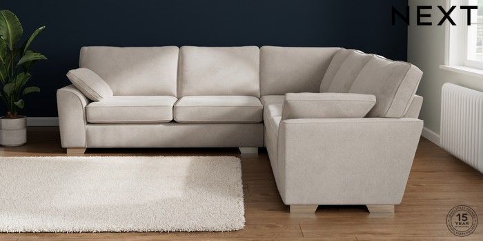 7.2.6 Buy Stamford Large Corner Sofa - Universal Chunky Chenille Oyster Large Square Angle - Chrome Metal from the Next UK online shop Click here to use our accessible website