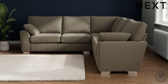 7.2.10 Buy Stamford Large Corner Sofa - Universal Chunky Marl Light Olive Green Large Square Angle - Chrome Metal from the Next UK online shop Click here to use our accessible website