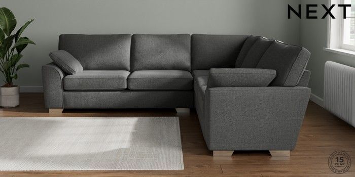 7.2.10 Buy Stamford Large Corner Sofa - Universal Chunky Texture Dark Grey Large Square Angle - Chrome Metal from the Next UK online shop Click here to use our accessible website