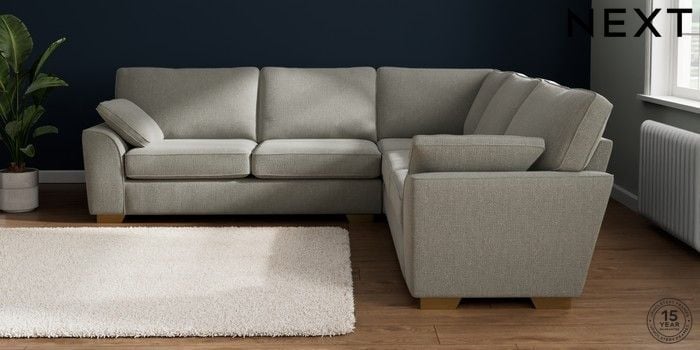 7.2.10 Buy Stamford Large Corner Sofa - Universal Chunky Texture Dove Large Square Angle - Brushed Brass from the Next UK online shop Click here to use our accessible website