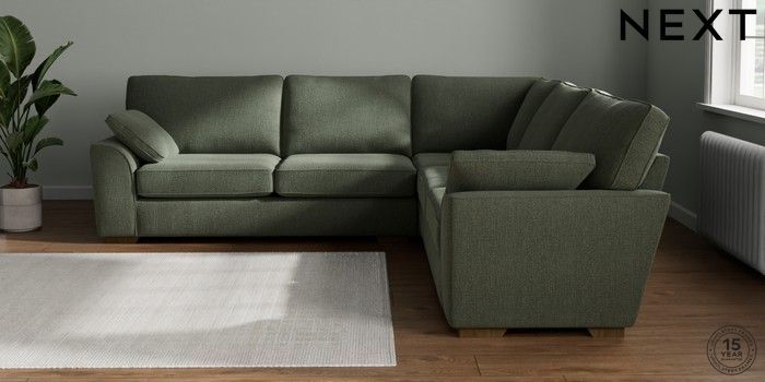 7.2.10 Buy Stamford Large Corner Sofa - Universal Chunky Texture Mid Forest Green Large Square Angle - Mid from the Next UK online shop Click here to use our accessible website