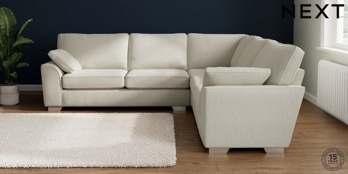 7.2.10 Buy Stamford Large Corner Sofa - Universal Chunky Texture Oyster Large Square Angle - Chrome Metal from the Next UK online shop Click here to use our accessible website