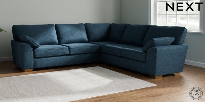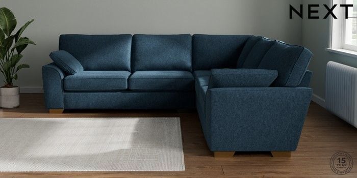 7.2.10 Buy Stamford Large Corner Sofa - Universal Cotswold Chenille Dark Blue Large Square Angle - Brushed Brass from the Next UK online shop Click here to use our accessible website