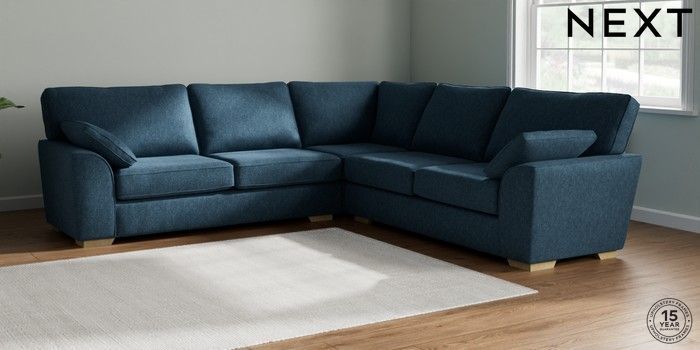 7.2.10 Buy Stamford Large Corner Sofa - Universal Cotswold Chenille Dark Blue Large Square Angle - Light from the Next UK online shop Click here to use our accessible website