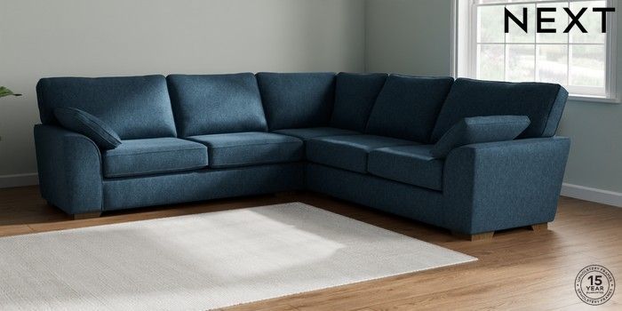 7.2.10 Buy Stamford Large Corner Sofa - Universal Cotswold Chenille Dark Blue Large Square Angle - Mid from the Next UK online shop Click here to use our accessible website