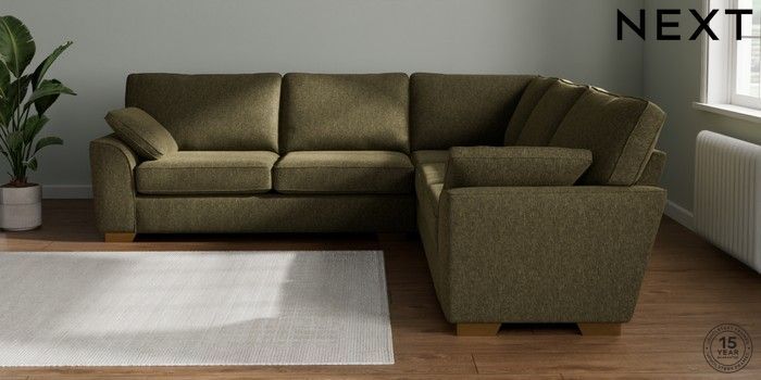 7.2.10 Buy Stamford Large Corner Sofa - Universal Cotswold Chenille Dark Green Large Square Angle - Brushed Brass from the Next UK online shop Click here to use our accessible website