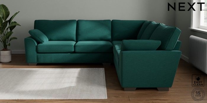 7.3.1 Buy Stamford Large Corner Sofa - Universal Fine Chenille Easy Clean Dark Juniper Green Large Square Angle - Gunmetal from the Next UK online shop Click here to use our accessible website