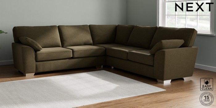7.3.1 Buy Stamford Large Corner Sofa - Universal Fine Chenille Easy Clean Dark Moss Green Large Square Angle - Chrome Metal from the Next UK online shop Click here to use our accessible website