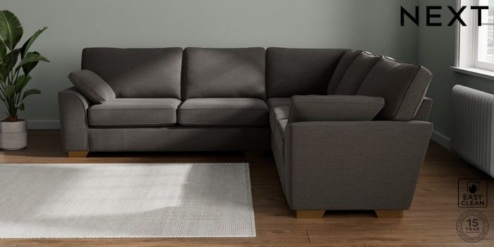 7.2.10 Buy Stamford Large Corner Sofa - Universal Fine Chenille Easy Clean Dark Smoke Grey Large Square Angle - Brushed Brass from the Next UK online shop Click here to use our accessible website