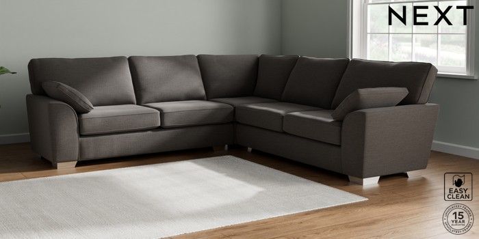 7.2.10 Buy Stamford Large Corner Sofa - Universal Fine Chenille Easy Clean Dark Smoke Grey Large Square Angle - Chrome Metal from the Next UK online shop Click here to use our accessible website