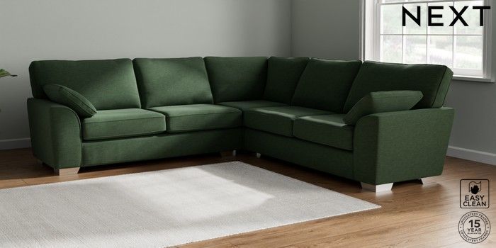 7.3.1 Buy Stamford Large Corner Sofa - Universal Fine Chenille Easy Clean Mid Khaki Green Large Square Angle - Chrome Metal from the Next UK online shop Click here to use our accessible website