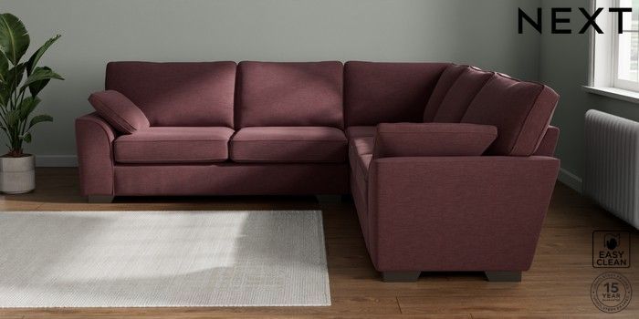 7.3.1 Buy Stamford Large Corner Sofa - Universal Fine Chenille Easy Clean Mid Mulberry Purple Large Square Angle - Gunmetal from the Next UK online shop Click here to use our accessible website