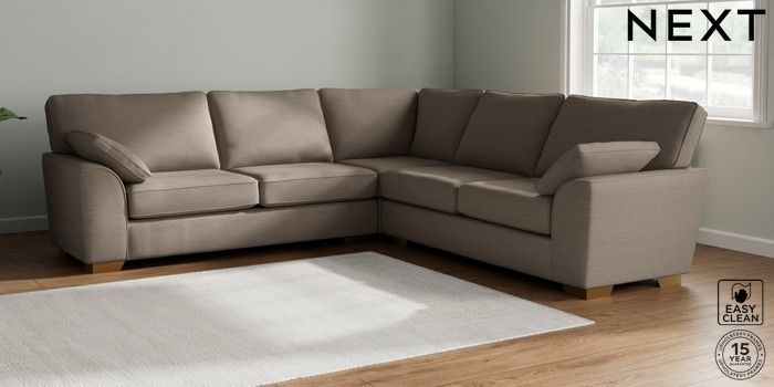 7.3.1 Buy Stamford Large Corner Sofa - Universal Fine Chenille Easy Clean Mid Taupe Brown Large Square Angle - Brushed Brass from the Next UK online shop Click here to use our accessible website