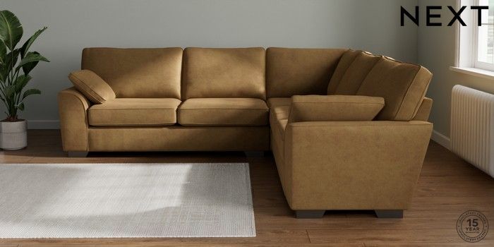 7.2.6 Buy Stamford Large Corner Sofa - Universal Luxe Chenille Honey Yellow Large Square Angle - Gunmetal from the Next UK online shop Click here to use our accessible website
