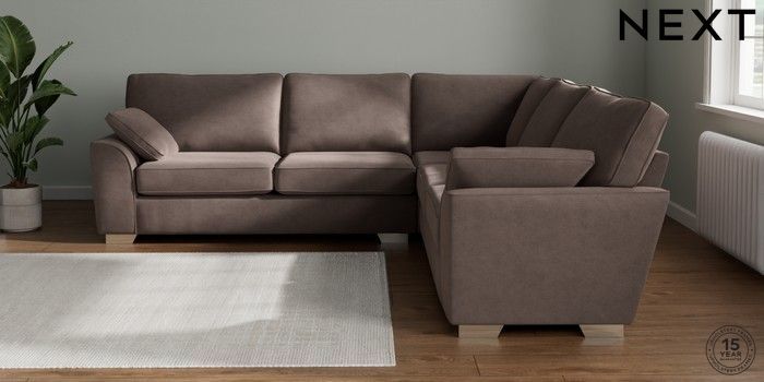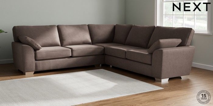 7.2.10 Buy Stamford Large Corner Sofa - Universal Luxe Chenille Mink Brown Large Square Angle - Chrome Metal from the Next UK online shop Click here to use our accessible website