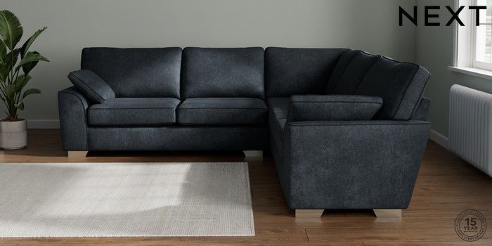 7.2.10 Buy Stamford Large Corner Sofa - Universal Plush Chenille Slate Blue Large Square Angle - Chrome Metal from the Next UK online shop Click here to use our accessible website