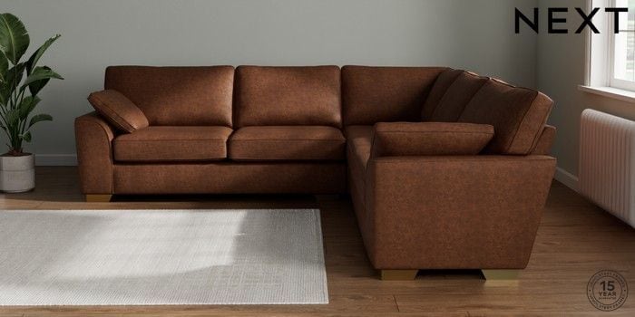 7.3.1 Buy Stamford Large Corner Sofa - Universal Monza Faux Leather Easy Clean Chestnut Brown Large Square Angle - Brushed Brass from the Next UK online shop Click here to use our accessible website
