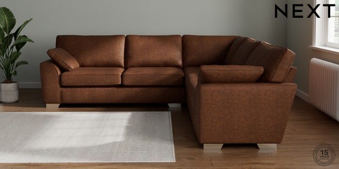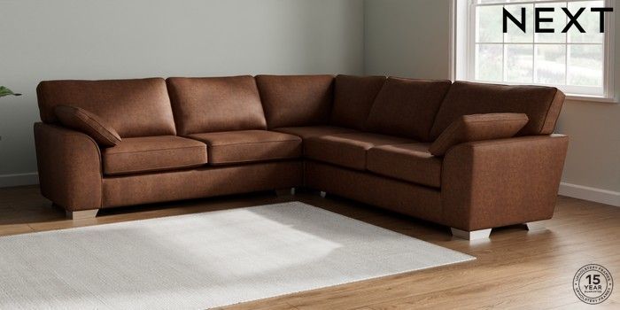 7.3.1 Buy Stamford Large Corner Sofa - Universal Monza Faux Leather Easy Clean Chestnut Brown Large Square Angle - Chrome Metal from the Next UK online shop Click here to use our accessible website