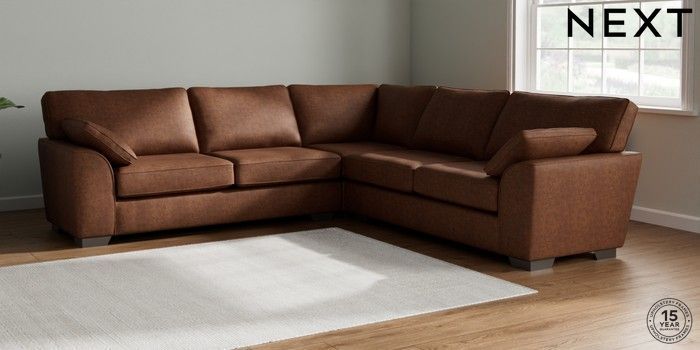 7.3.1 Buy Stamford Large Corner Sofa - Universal Monza Faux Leather Easy Clean Chestnut Brown Large Square Angle - Gunmetal from the Next UK online shop Click here to use our accessible website
