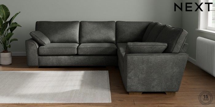 7.2.10 Buy Stamford Large Corner Sofa - Universal Plush Chenille Dark Grey Large Square Angle - Mid from the Next UK online shop Click here to use our accessible website