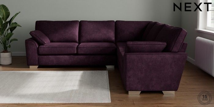 7.2.10 Buy Stamford Large Corner Sofa - Universal Plush Chenille Dark Plum Purple Large Square Angle - Chrome Metal from the Next UK online shop Click here to use our accessible website